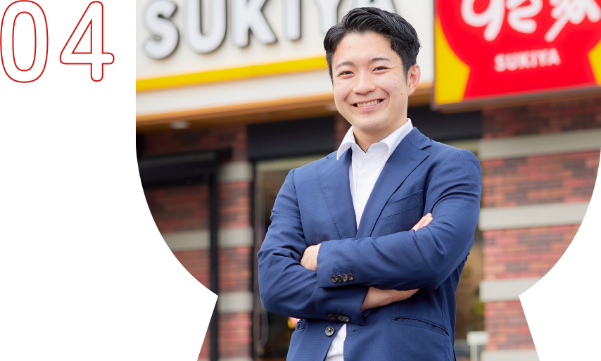 中部支社 静岡東ディストリクト清水富士ブロック ブロックマネジャー(取材当時) T.M 2021年入社 東京支社 東京東ディストリクト豊洲ブロック ブロックマネジャー(取材当時) M.M 2022年入社 神奈川支社 神奈川南ディストリクト 金沢八景ブロック ブロックマネジャー(取材当時) H.O 2022年入社 東京支社 東京南ディストリクト渋谷ブロック ブロックマネジャー(取材当時) H.S 2021年入社 グローバルファスト人事部 人財開発課 トレーニー(取材当時) H.M 2025年入社 関西支社 支社COO(取材当時) H.K 2012年入社 すき家だからできること 詳しく見る
